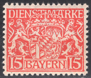 Bavaria Scott O12. Mint. Never hinged.