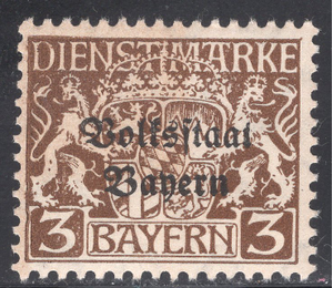 Bavaria Scott O20. Mint. Never hinged.