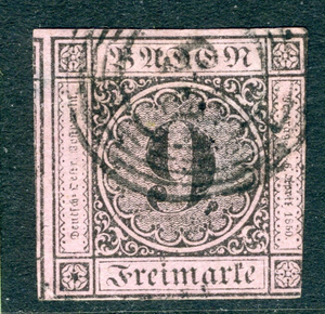 Germany 1851 Baden 9kr Rose Scott #4 VFU A386