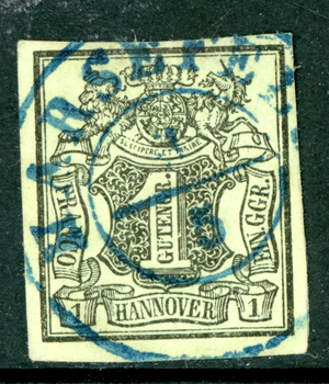 Germany 1851 Hanover 1gg Gray Green Scott #2 VFU K732