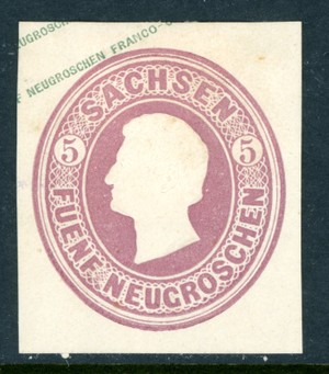 Germany 1859 Saxony King Johann 5 NG Cut Square Mint K892