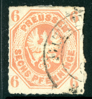 Germany 1861 Prussia 6pf Orange Scott # 16 VFU M456