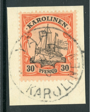 Germany 1901 Caroline Islands 30pf Unwmk (Sc #17) on Piece CDS Signed F134