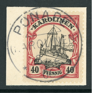 Germany 1901 Caroline Islands 40pf Unwmk (Sc #13) on Piece CDS F128