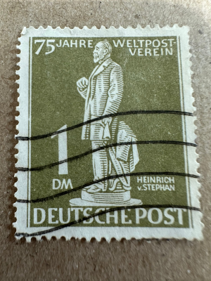 Germany Berlin stamp from 1949. Heinrich von Stephen celebrating the 75th anniversary of the Universal Postal Union.