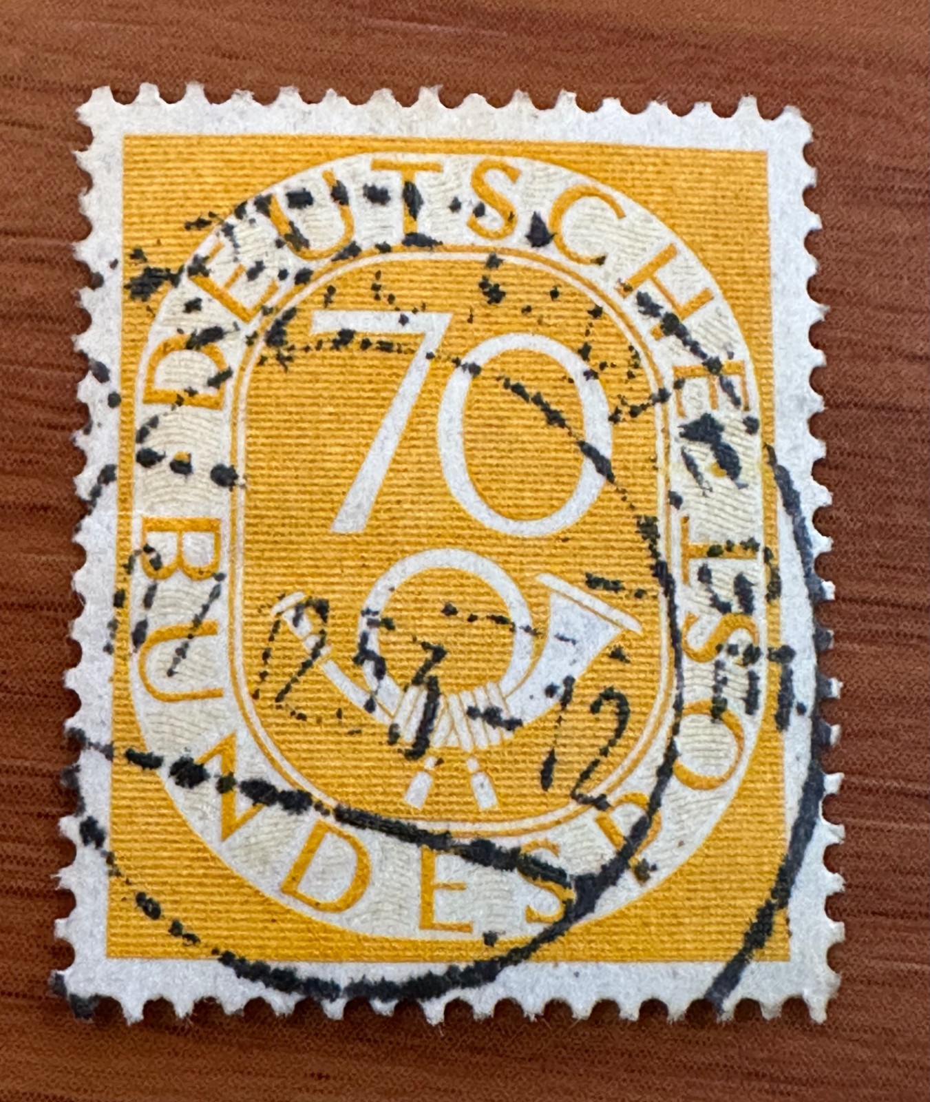 The product is a used Germany 1952 postage stamp featuring the denomination of 70pf in yellow-orange color. It belongs to the period of 1951-1960 and originates from Germany. The stamp is Scott 683 and is categorized under the topic of music and musicians. This collectible item is in F/VF (Fine/Very Fine) grade and is uncertified.