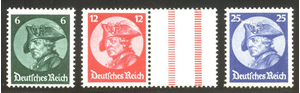 Scott #398-400: 1933 Frederick the Great Set Centering & Condition: Mint. Fresh. Very Fine set. Reverse (Gum Side): Original gum. Never Hinged; #398 has a small disturbance. Faults / Imperfections: None The item pictured is the actual item you are purchasing, unless otherwise noted. I also offer an interest-free layaway plan. Ask me about it!" All items will be mailed a day or two after payment is received. --------------------------------------------------------------------------------