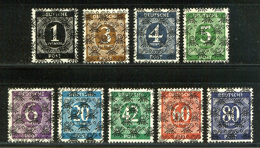 Michel #1/II - Ix//II: 1948 1pf - 80pf Overprints Centering & Condition: Mint. Fresh. Very Fine set. Each stamp signed by Schlegel. Reverse (Gum Side): Original Gum. Never Hinged. Faults / Imperfections: None The item pictured is the actual item you are purchasing, unless otherwise noted. I also offer an interest-free layaway plan. Ask me about it!" All items will be mailed a day or two after payment is received. ![]() ![]() ![]() ![]() -------------------------------------------------------------------------------- Please click any of the following to read: |