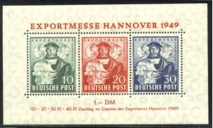 Scott #664a: 1949 Hanover Fair S/S Centering & Condition: Mint. Fresh. Very Fine sheet. Reverse (Gum Side): Original gum. Never Hinged. Faults / Imperfections: None The item pictured is the actual item you are purchasing, unless otherwise noted. I also offer an interest-free layaway plan. Ask me about it!" All items will be mailed a day or two after payment is received. ![]() ![]() ![]() --------------------------------------------------------------------------------
