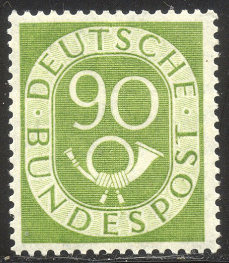 Scott #685: 1951 90pf Posthorn, Top Value Centering & Condition: Mint. Fresh. Very Fine. Reverse (Gum Side): Original gum. Never Hinged. Faults / Imperfections: None The item pictured is the actual item you are purchasing, unless otherwise noted. I also offer an interest-free layaway plan. Ask me about it!" All items purchased will be mailed a day or two after payment is received. --------------------------------------------------------------------------------