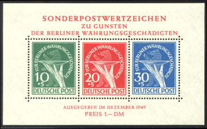 Scott #9NB3a: 1949 Berlin Victims S/S Centering & Condition: Mint. Fresh. Very Fine sheet. Reverse (Gum Side): Original gum. Never Hinged. Faults / Imperfections: None The item pictured is the actual item you are purchasing, unless otherwise noted. I also offer an interest-free layaway plan. Ask me about it!" All items will be mailed a day or two after payment is received. --------------------------------------------------------------------------------