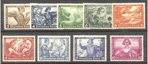 Scott #B49-57: 1933 Opera Set Centering & Condition: Mint. Fresh. Very Fine set. Reverse (Gum Side): Original gum. Lightly Hinged. Faults / Imperfections: None The item pictured is the actual item you are purchasing, unless otherwise noted. I also offer an interest-free layaway plan. Ask me about it!" All items will be mailed a day or two after payment is received. --------------------------------------------------------------------------------