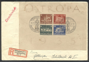 Scott #B68: 1935 OSTROPA S/S Centering & Condition: RARE Full Souv Sheet on cover. Tied to cover by Registration label. Reverse (Gum Side): N/A Faults / Imperfections: Souv Sheet and cover have small tear at top and tiny one at right The item pictured is the actual item you are purchasing, unless otherwise noted. I also offer an interest-free layaway plan. Ask me about it!" All items will be mailed a day or two after payment is received. --------------------------------------------------------------------------------