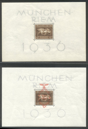 Scott #B90, B105: 1936-37 Horse Race S/S Centering & Condition: Mint. Fresh. Very Fine sheets. Reverse (Gum Side): Original gum. Never Hinged. Faults / Imperfections: None The item pictured is the actual item you are purchasing, unless otherwise noted. I also offer an interest-free layaway plan. Ask me about it!" All items will be mailed a day or two after payment is received. --------------------------------------------------------------------------------