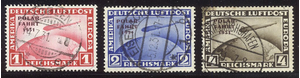 Scott #C40-42: 1931 Zeppelin Polar Flight Set Centering & Condition: Used. Very Fine set. Reverse (Gum Side): N/A Faults / Imperfections: None The item pictured is the actual item you are purchasing, unless otherwise noted. I also offer an interest-free layaway plan. Ask me about it!" All items will be mailed a day or two after payment is received. --------------------------------------------------------------------------------