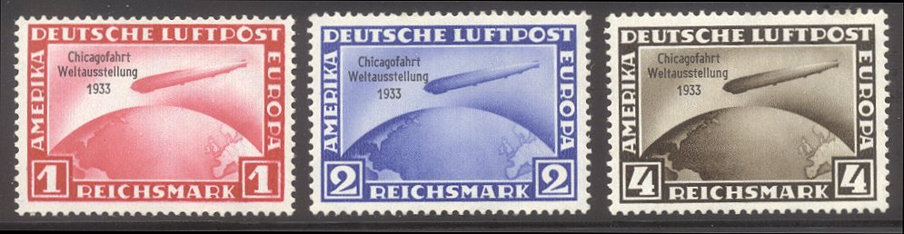 Scott #C43-45: 1933 Chicago Flight Centering & Condition: Mint. Fresh. Very Fine and SCARCE set. Reverse (Gum Side): Original gum. Never Hinged. Faults / Imperfections: None The item pictured is the actual item you are purchasing, unless otherwise noted. I also offer an interest-free layaway plan. Ask me about it!" All items will be mailed a day or two after payment is received. ![]() ![]() ![]() --------------------------------------------------------------------------------
