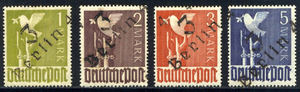 Scott #11a-d: 1M - 5M Dove set w/ "District 3 Berlin 4" Ovpt Centering & Condition: Mint. Fresh. Fine-Very Fine set. Reverse (Gum Side): Original gum. Hinged with remnants. Faults / Imperfections: None The item pictured is the actual item you are purchasing, unless otherwise noted. I also offer an interest-free layaway plan. Ask me about it!" All items will be mailed a day or two after payment is received. --------------------------------------------------------------------------------