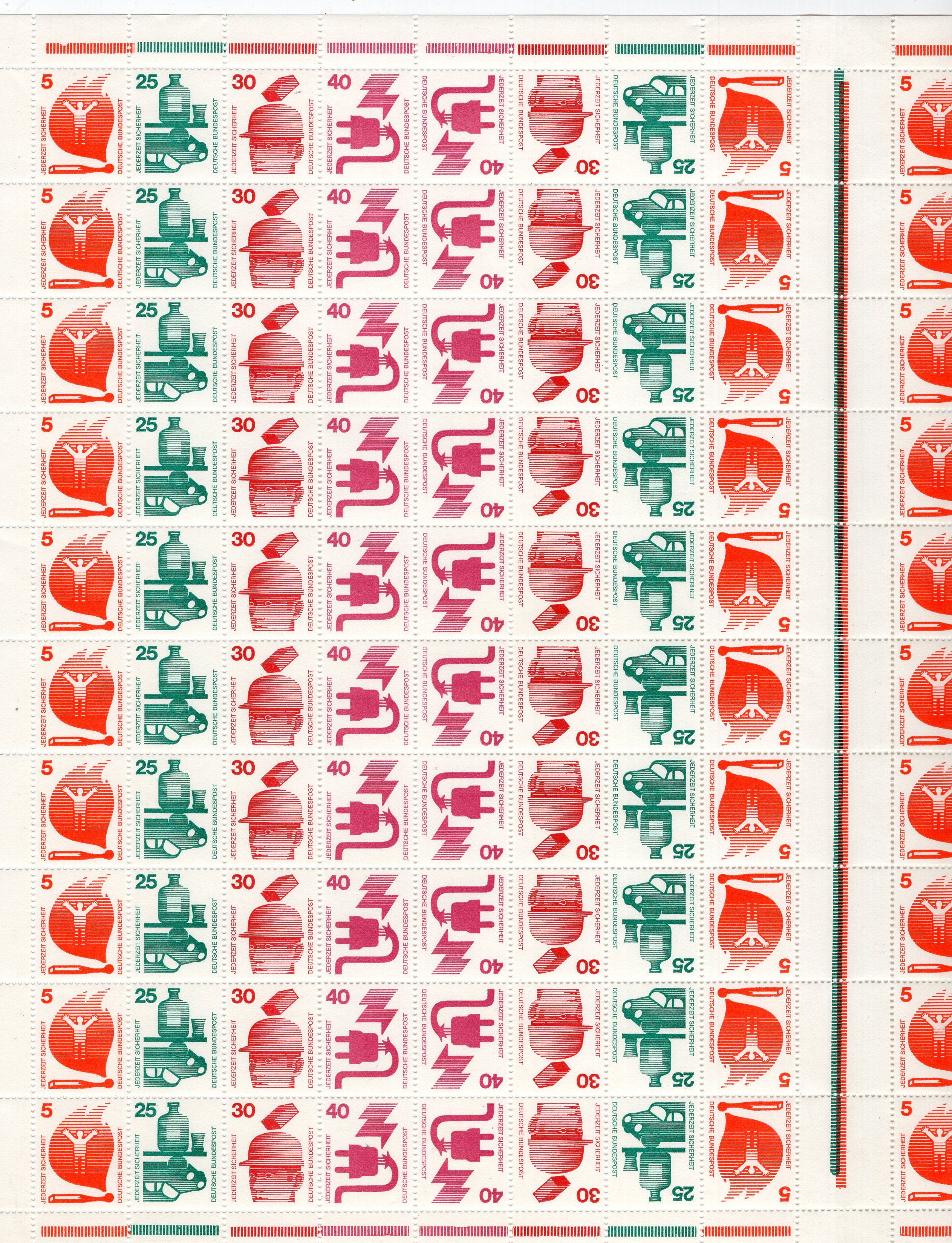 Germany Scott 1074/1077/1078/1079. Sheet of 120. Mint. Never hinged. Folded. 2