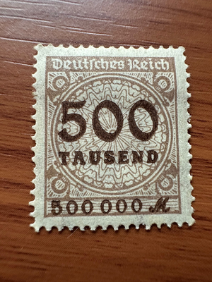 This is a 1923 Germany stamp - 500 tausend mark in brown color.