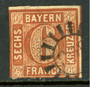 Germany States 1850 Bavaria 6 Kreuzer Brown Scott #5 VFU K836