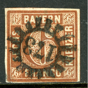 Germany States 1850 Bavaria 6 Kreuzer Brown Scott #5 VFU K837