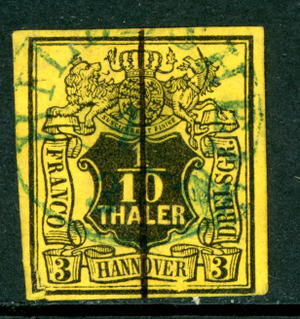 Germany States 1851 Hannover 1/10 Thaler (3sgr) Yellow VFU K738