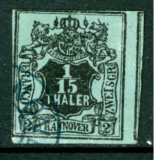 Germany States 1851 Hannover 1/15 Thaler (2sgr) Gray Blue Scott #5 VFU K715