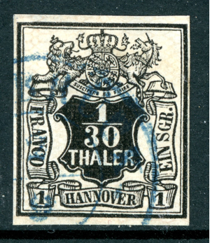 Germany States 1851 Hannover 1/30 Thaler (1sgr) Scott #3 VFU K717