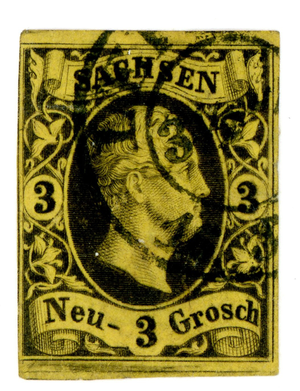 Germany States 1851 Prussia 3 ngr Black/Yellow Scott #8 VFU K864