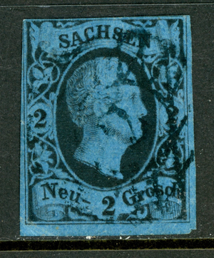 Germany States 1852 Prussia 2 ngr Black/Blue Scott #7 VFU K861