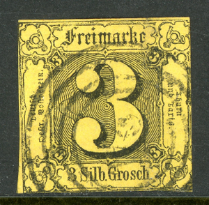 Germany States 1852 Thurn & Taxis North Dist 3 sgr Yellow Sc #7 VFU O635