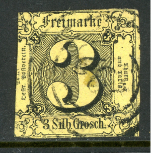 Germany States 1852 Thurn & Taxis North Dist 3 sgr Yellow Sc #7 VFU O637