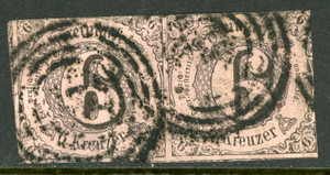 Germany States 1852 Thurn & Taxis Southern Dist 6k Rose Sc #45 VFU PAIR O749