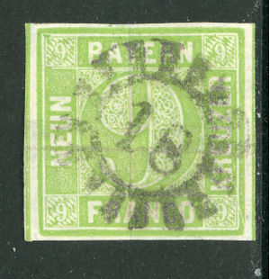 Germany States 1853 Bavaria1 9 Kreuzer Green Scott #6 VFU F514