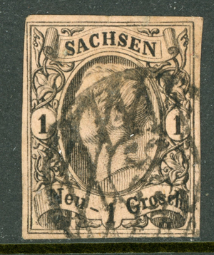 Germany States 1855 Saxony 1 ngr Black/Rose Scott #10 VFU L54