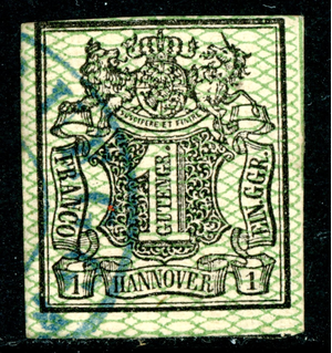 Germany States 1856 Hannover 1ggr Black & Green Scott #11 VFU K725