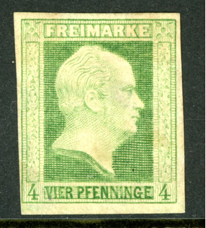 Germany States 1856 Prussia 4pf Yellow Green Scott #1 Mint W880