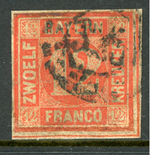 Germany States 1858 Bavaria 12 Kreuzer Red Scott #7 VFU K805