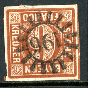 Germany States 1858 Bavaria 9Kr Brown Scott #5 VFU M350