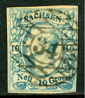 Germany States 1859 Prussia 10 ngr Black/Milky Blue Scott #14 VFU K906