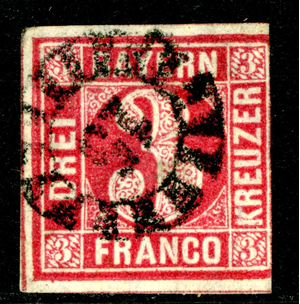Germany States 1862 Bavaria 3 Kr Rose Scott #10 VFU H655