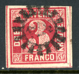 Germany States 1862 Bavaria 3 Kreuzer Carmine Scott #10 VFU A397