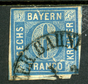 Germany States 1862 Bavaria 6 Kreuzer Blue Scott #11 VFU K851