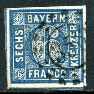 Germany States 1862 Bavaria 6 Kreuzer Blue Scott #11 VFU K854