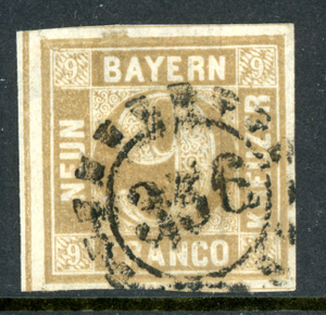 Germany States 1862 Bavaria 9 Kreuzer Bister Scott #12 VFU K773