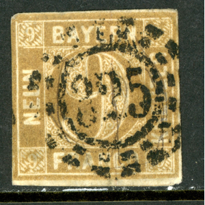 Germany States 1862 Bavaria 9 Kreuzer Bister Scott #12 VFU K858