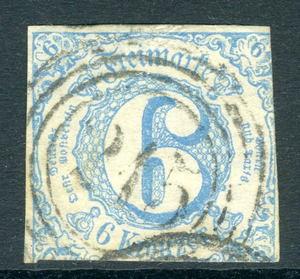 Germany States 1862 Thurn & Taxis South 6Kr Blue Scott #54 VFU A170