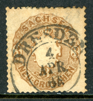 Germany States 1863 Saxony 3 ngr Bister Brown Scott #19 VFU K986