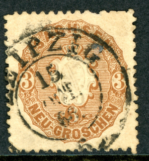 Germany States 1863 Saxony 3 ngr Bister Brown Scott #19a VFU K988
