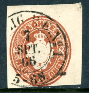 Germany States 1863 Saxony 3 sgr Bister Brown Carmine Cut Square VFU K901